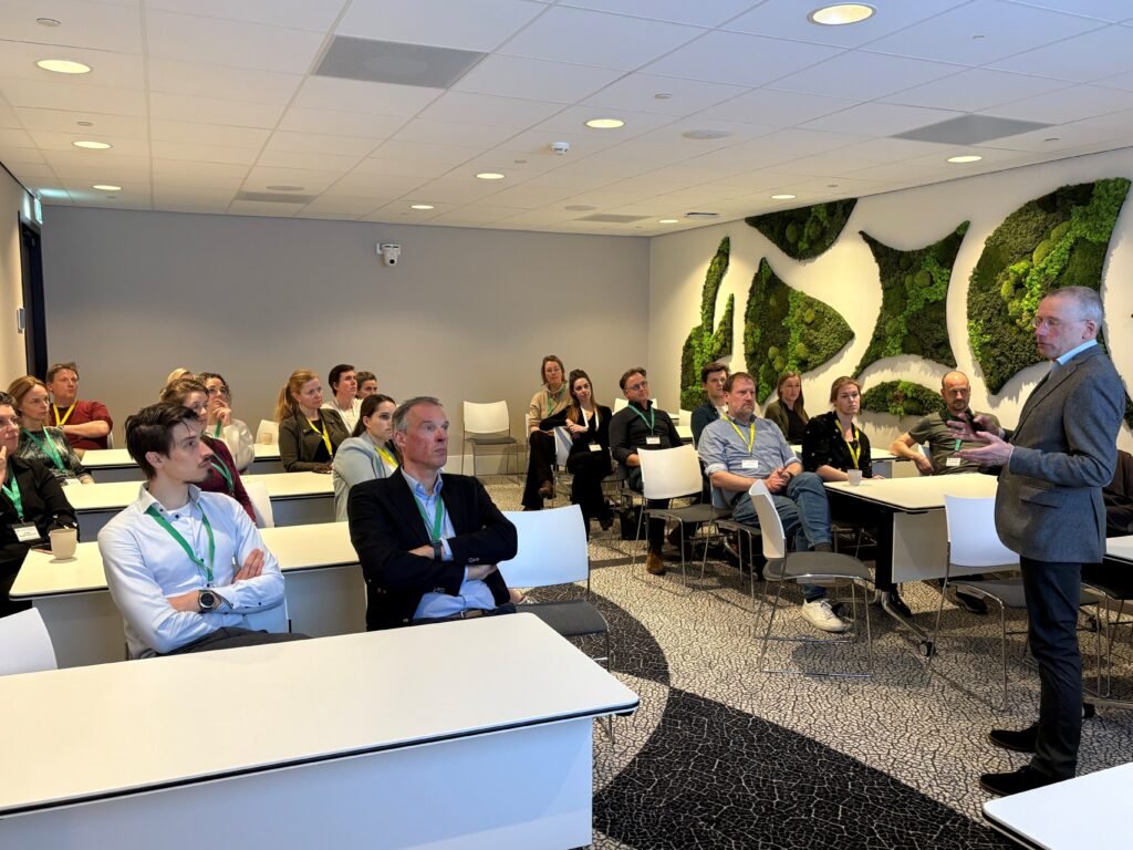 Hierna was het tijd voor koffie en alvast kort napraten. De nieuwe locatie was een hele verandering ten opzichte van de afgelopen jaren. Alle zalen lagen om een centraal lounge-gedeelte. Op meerdere plekken was het mogelijk om versnaperingen te halen en er waren meer dan genoeg plekken om elkaar zittend of staand te ontmoeten. Gecombineerd met een goede bereikbaarheid is het wat de commissie betreft een geslaagde nieuwe locatie.